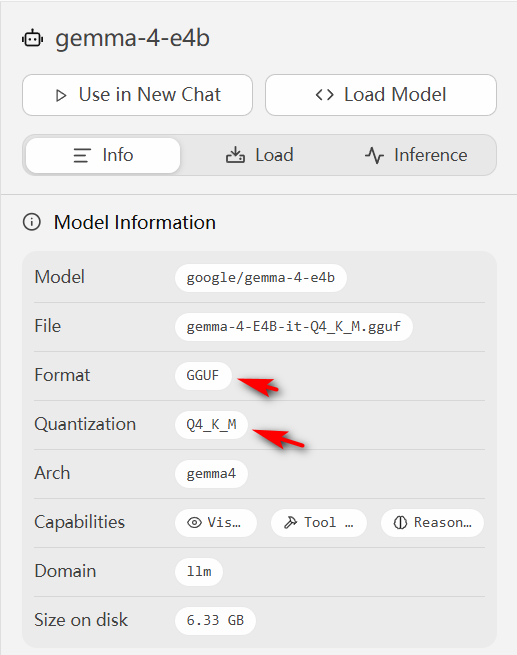 在gemma-4-e4b模型下载时,默认下载的是Q4_K_M的量化模型,格式为GGUF。 qwen3.5-9b也类似。